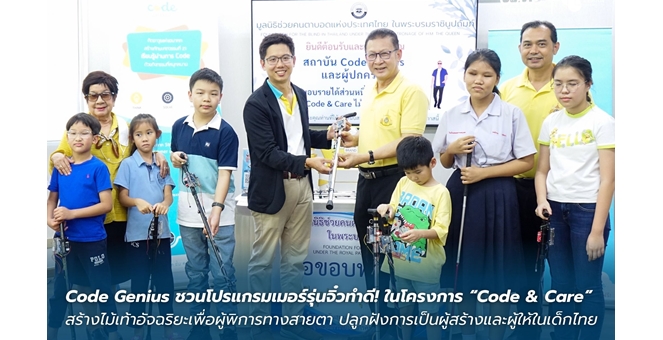 • Code Genius ชวนโปรแกรมเมอร์รุ่นจิ๋วทำดี! ในโครงการ “Code & Care” สร้างไม้เท้าอัจฉริยะเพื่อผู้พิการทางสายตา ปลูกฝังการเป็นผู้สร้างและผู้ให้ในเด็กไทย