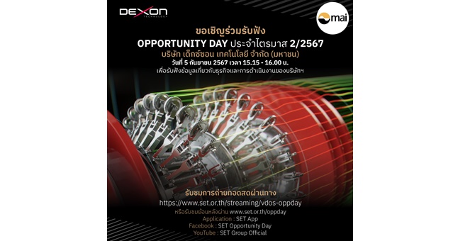 DEXON ขอเชิญร่วมรับฟัง Opportunity Day ประจำไตรมาส 2/2567 วันที่ 5 ก.ย.2567