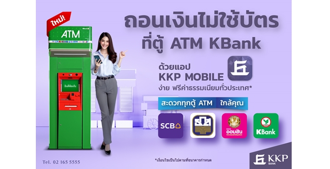 • แอปฯ KKP MOBILE ขยายบริการถอนเงินสดไม่ใช้บัตร ครอบคลุมตู้ ATM กสิกรไทยทั่วประเทศ ฟรี 10 ครั้งต่อเดือน