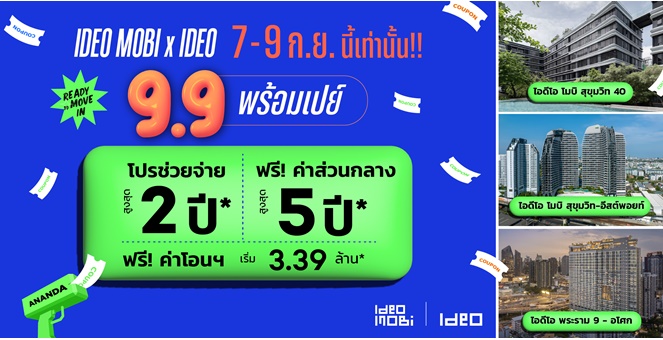 star_borderModal Upgrade PackageModal Upgrade Packageอนันดาฯ อัดแคมเปญเด็ด “IDEO MOBI X IDEO 9.9 พร้อมเปย์” ดีลพิเศษเดือน 9 ดีลราคาพิเศษ พร้อม Flash Sale ที่คุ้มค่า “โปรช่วยจ่าย สูงสุด 2 ปี*”29 ส.ค. 2567 16:04 น.
