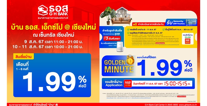 star_borderModal Upgrade PackageModal Upgrade Packageธอส. จัดผลิตภัณฑ์ทางการเงิน อัตราดอกเบี้ยพิเศษสุด เอาใจชาวภาคเหนือตอนบน ในงานบ้าน ธอส. เอ็กซ์โป @เชียงใหม่ ณ เซ็นทรัล เชียงใหม่ ระหว่างวันที่ 9 – 11 ส.ค. 25675 ส.ค. 2567 17:33 น.