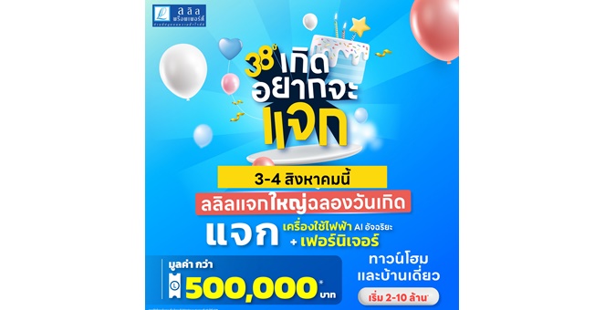 star_borderModal Upgrade PackageModal Upgrade Package3-4 ส.ค.นี้ ลลิล พร็อพเพอร์ตี้ แจกใหญ่ฉลองเดือนเกิด กับโปร “38 ปีเกิดอยากจะแจก” แจกทั้งเฟอร์ฯ และเครื่องใช้ไฟฟ้าระบบ AI พร้อมส่วนลดสูงสุดถึงครึ่งล้าน!31 ก.ค. 2567 10:59 น.