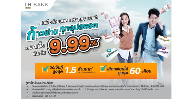 • LH Bank ออกแคมเปญสินเชื่อส่วนบุคคล Happy Cash “ก้าวผ่านทุกอุปสรรค” ดอกเบี้ยเริ่มต้น 9.99% ต่อปี นาน 5 เดือน