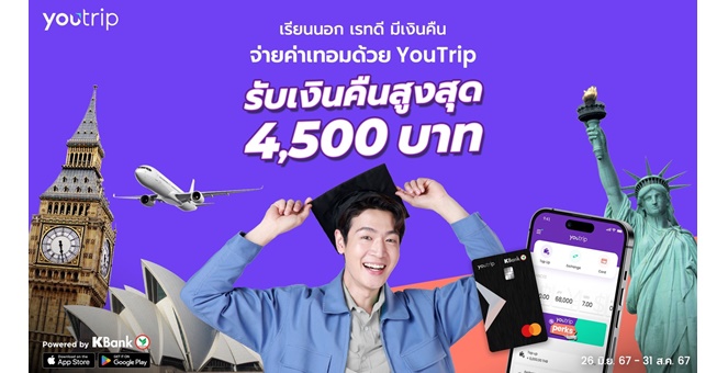 • YouTrip จัดโปรสุดคุ้มรับเปิดเทอม “เรียนนอก เรทดี มีเงินคืน” ประหยัดกว่า 40,000 บาท เมื่อใช้จ่ายในการเรียนต่อต่างประเทศ