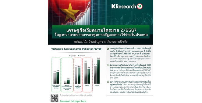 star_borderModal Upgrade PackageModal Upgrade Packageศูนย์วิจัยกสิกรฯ เผยเศรษฐกิจเวียดนามไตรมาส 2/2567 โตสูงกว่าคาดจากการลงทุนภาครัฐและการใช้จ่ายในประเทศ แต่แนวโน้มยังเผชิญความเสี่ยงหลายปัจจัย1 ก.ค. 2567 13:16 น.