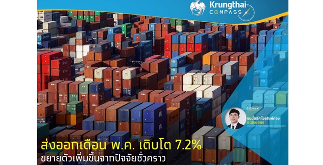 • Krungthai COMPASS เผยส่งออกเดือน พ.ค. เติบโต 7.2% ขยายตัวเพิ่มขึ้นจากปัจจัยชั่วคราว