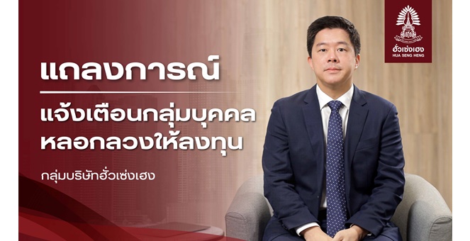 star_borderModal Upgrade PackageModal Upgrade Packageกลุ่มบริษัทฮั่วเซ่งเฮง แถลงการณ์แจ้งเตือนกรณีมิจฉาชีพระบาดหนัก แอบอ้างใช้ชื่อ “ฮั่วเซ่งเฮง” หลอกลวงให้ลงทุนทางออนไลน์ พบผู้เสียหายตกเป็นเหยื่อจำนวนมาก พร้อมแจ้งเตือนภัยและวิธีรับมือในทุกช่องทาง13 มิ.ย. 2567 13:09 น.