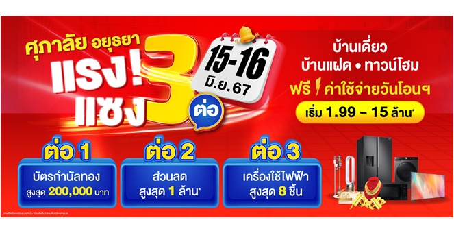 star_borderModal Upgrade PackageModal Upgrade Packageศุภาลัย เตรียมเดือด ปล่อยโปรโมชัน แรง! แซง 3 ต่อ บ้านเดี่ยว บ้านแฝด ทาวน์โฮม โซนอยุธยา ลดสูงสุด 1 ล้านบาท*10 มิ.ย. 2567 10:40 น.