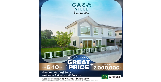 star_borderModal Upgrade PackageModal Upgrade Package“ควอลิตี้เฮ้าส์” จัดแคมเปญ “Good Place Great Price” ซื้อบ้านวันนี้ รับข้อเสนอแห่งปี มอบส่วนลดสูงสุด 2,000,000 บ.* กับโครงการบ้านเดี่ยว 24 โครงการ28 พ.ค. 2567 17:55 น.