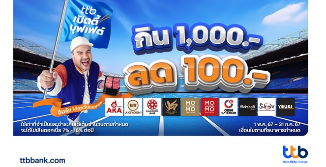 star_borderModal Upgrade PackageModal Upgrade Packageบัตรเครดิต ttb ชวนเปิดตี้บุฟเฟต์ ให้อิ่มคุ้มได้ทุกวันกับ 10 ร้านดัง รับสิทธิพิเศษ กิน 1,000.- ลด 100.-21 พ.ค. 2567 11:21 น.