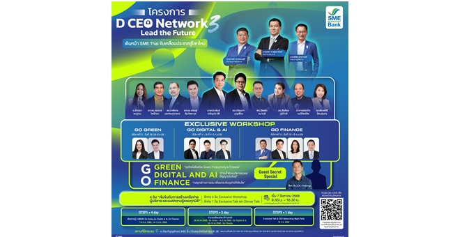 star_borderModal Upgrade PackageSME D Bank จัดยิ่งใหญ่ ‘โครงการ D CEO Network รุ่นที่ 3’ เปิดรับผู้บริหาร-ทายาทเอสเอ็มอี เข้าถึงบริการ ‘พัฒนาคู่เติมทุน’ ติดปีกโตก้าวกระโดด4 ส.ค. 2568 15:49 น.
