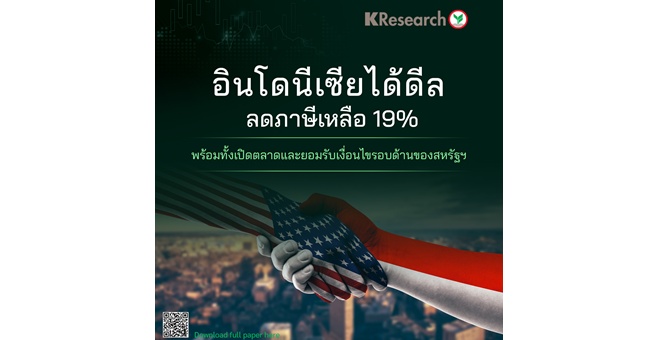 star_borderModal Upgrade Packageศูนย์วิจัยกสิกรฯ เผยอินโดนีเซียได้ดีลลดภาษีเหลือ 19% พร้อมทั้งเปิดตลาดและยอมรับเงื่อนไขรอบด้านของสหรัฐฯ24 Jul 2025 17:04